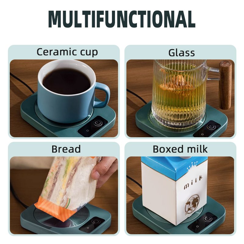 • Universal Compatibility: Heats ceramic mugs, glass cups, travel tumblers (Yeti/Stanley), and even lunch boxes.