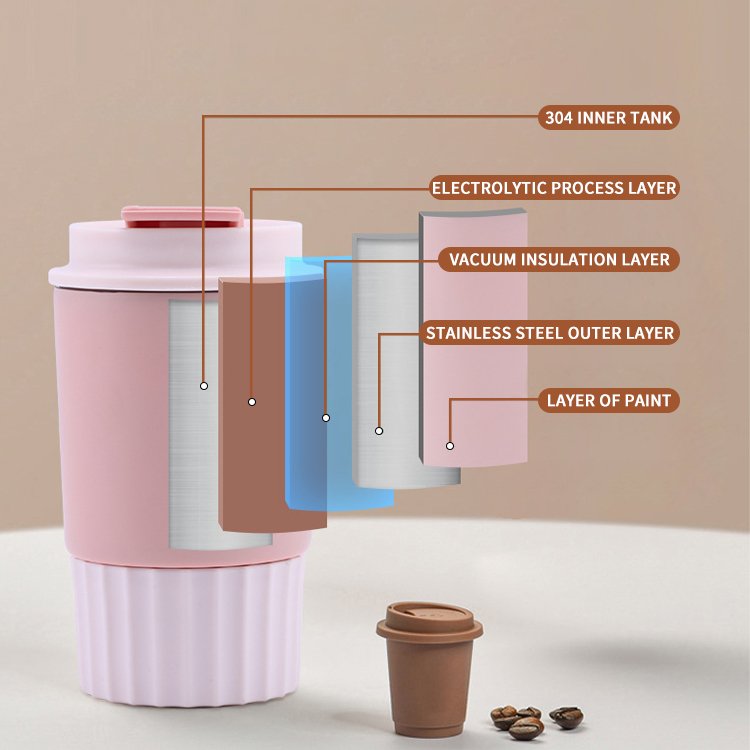 • Material: The outer layer of the cup is made of silicone, which has anti-slip properties, is soft and comfortable to the touch, and can effectively prevent the cup from slipping when taking it; the inner layer is made of stainless steel, which is sturdy and durable and has good heat preservation and cold preservation properties, and is not easy to rust or produce odor.