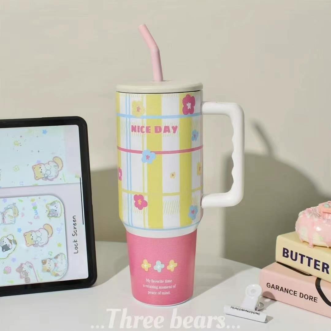 40oz Stainless Steel Insulated tumbler with Handle and Straw