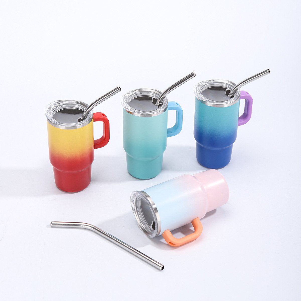 4oz Mini Stainless Steel Tumbler with Handle and Straw