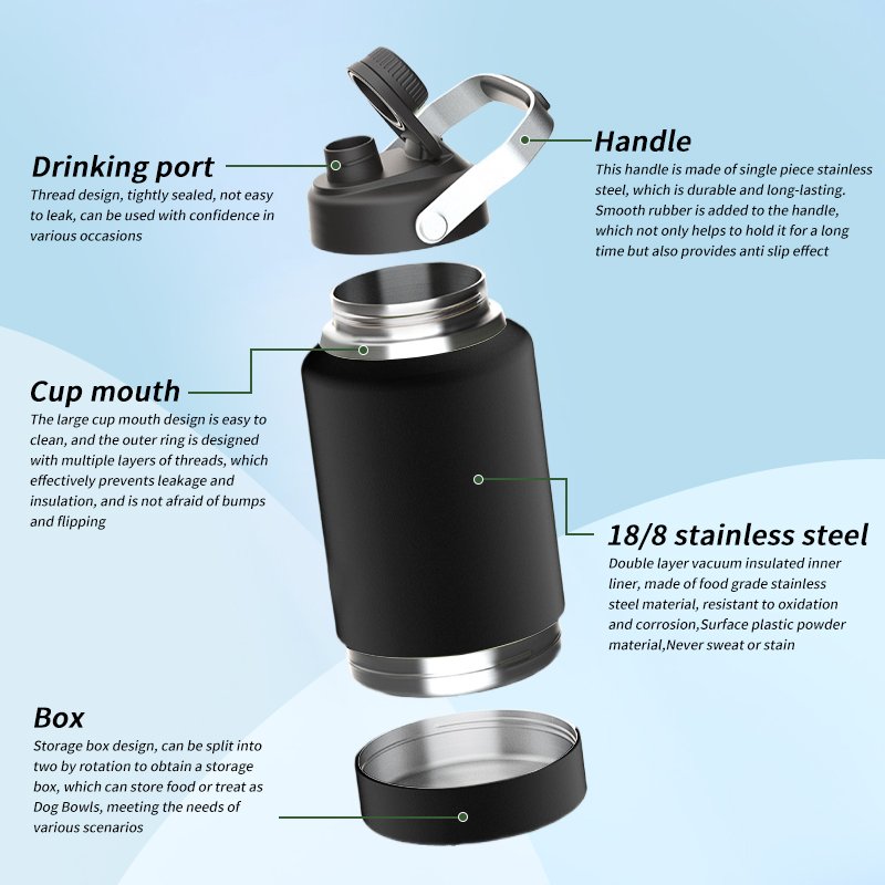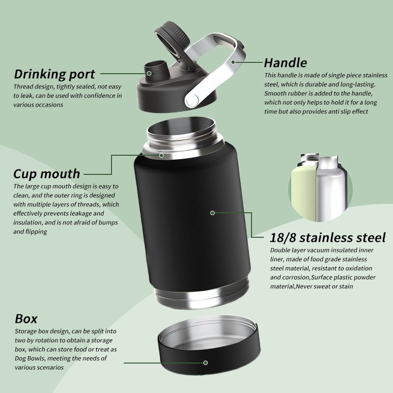 • 64oz Mega Capacity: Holds enough water for you + pets on long adventures. Fits car cup holders.