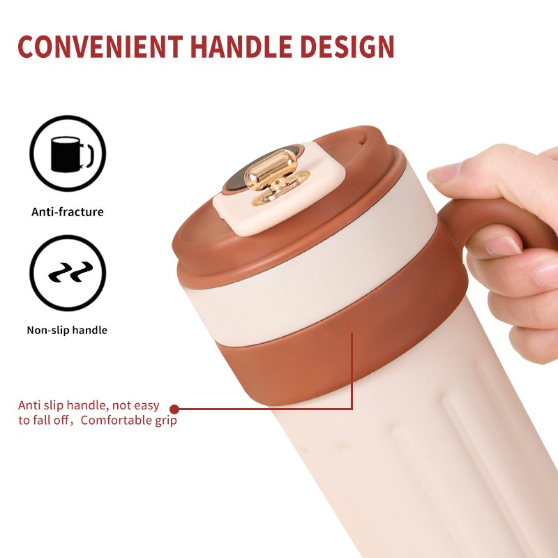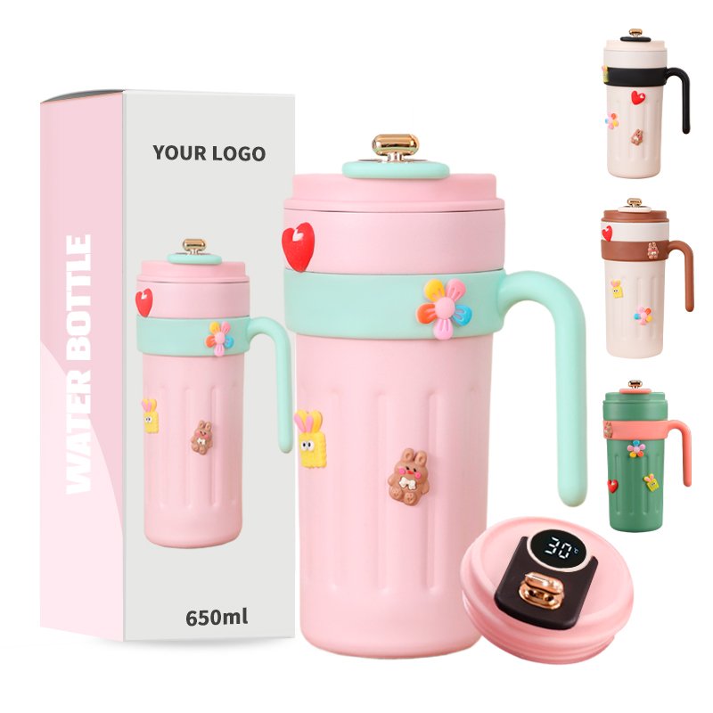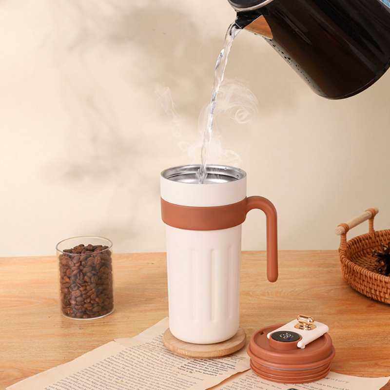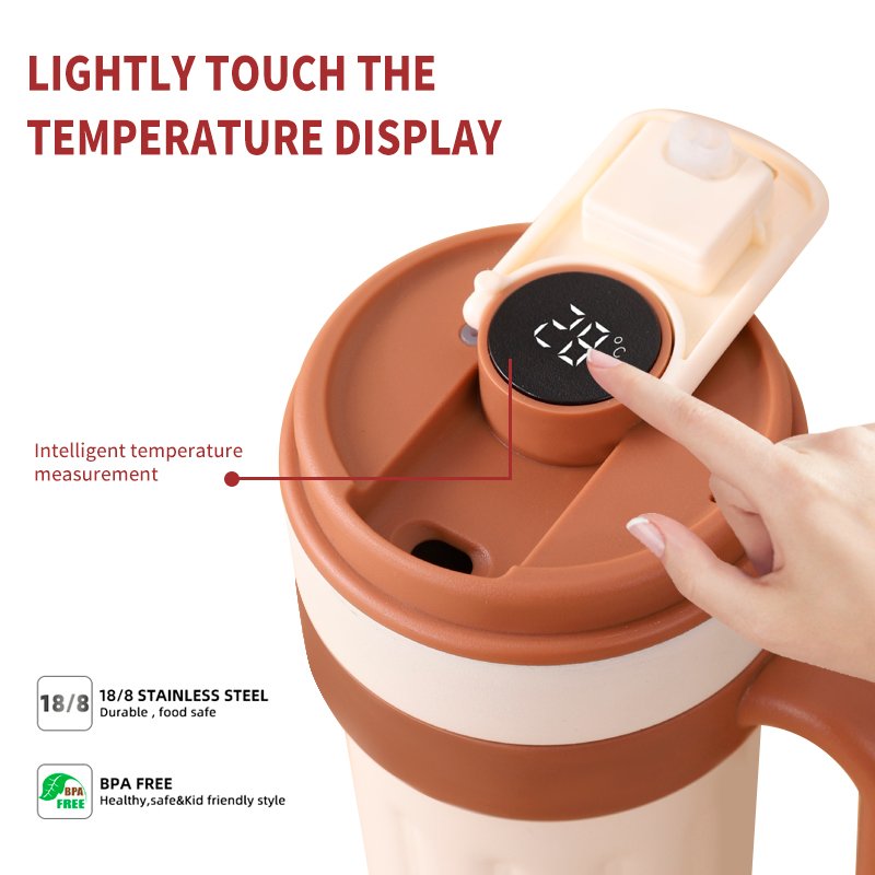 • Structure: With handle design, comfortable to hold and easy to hold; the cup lid has a golden push-type opening and closing part, which is exquisite and practical. The cup lid also integrates an electronic temperature display function, combining a sense of technology with good looks.