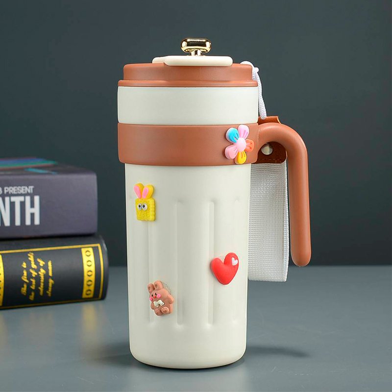 • Material: The main body of the cup is made of stainless steel, and the outer layer is wrapped with food-grade plastic or silicone (to achieve a cute appearance + anti-scalding), the cup cover and decorative parts are finely crafted, and the cartoon elements are strong and not easy to fall off.