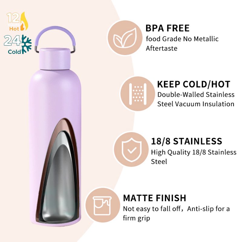 • Matte Finish with Anti-Slip Design: The matte coating is not easy to peel off and provides a firm, non-slip grip. The bottle base is designed with a stable non-slip feature, and the lid features a convenient lifting ring for easy carrying