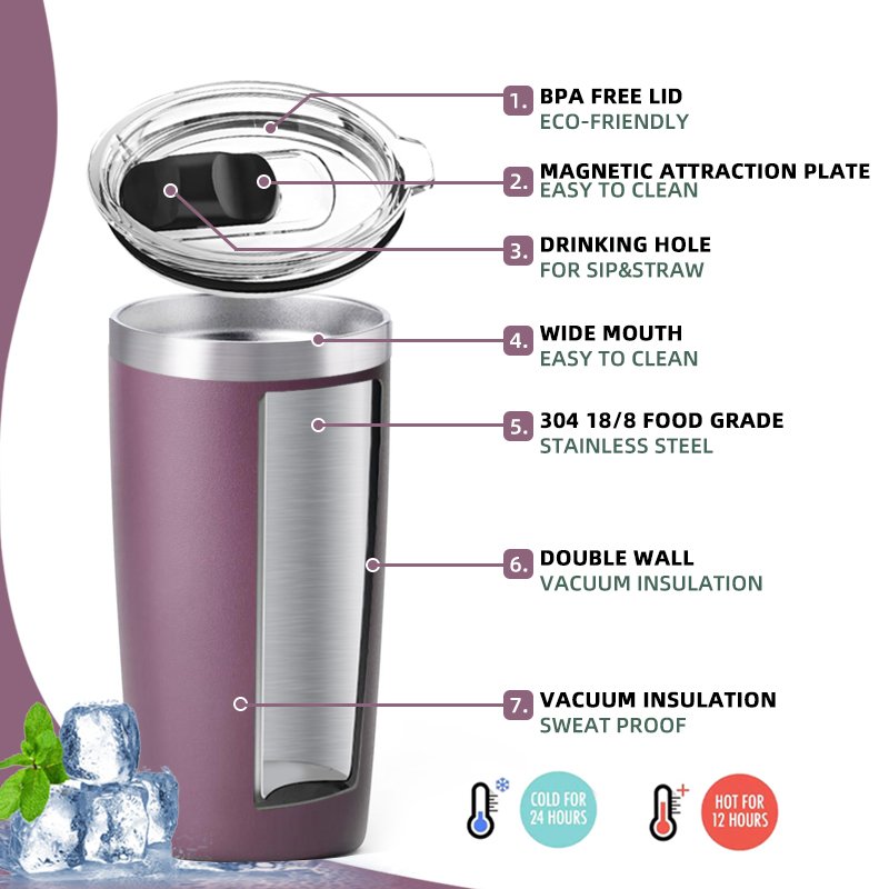 • BPA-Free Lid : Eco-friendly lid with extra gasket sealed to provide the maximum splashproof capability. Our stainless steel beer mug has a drinking hole on the top for easier sipping.