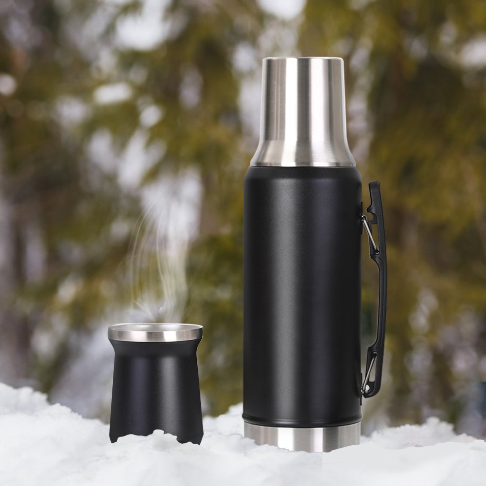WEVI 1000ml Stainless Steel Double-Wall Vacuum Insulated Yerba Mate Cup with Handle – Ideal for Outdoor Activities and Travel
