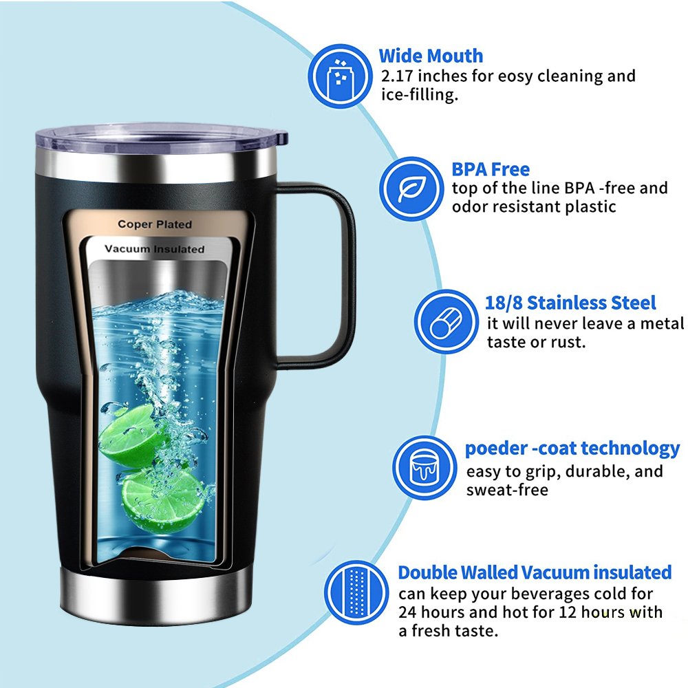 WEVI 30oz Double Walled Coffee Tumbler with Handle
