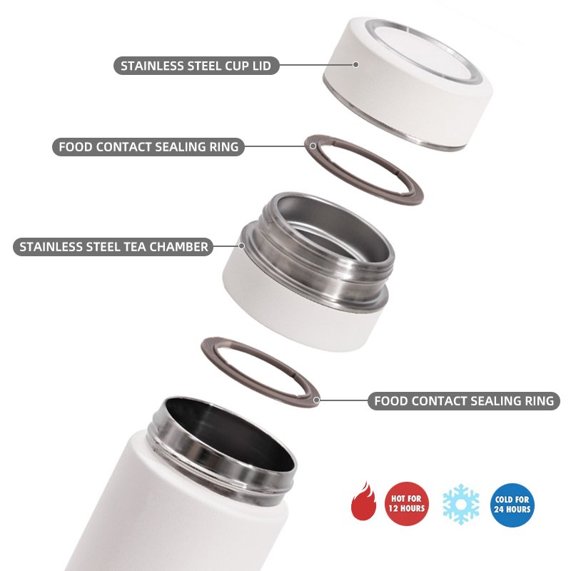 • Performance: The sealed and heat-insulating double-layer sealing ring is matched with a stainless steel structure to effectively block air from entering and achieve a good seal; the stainless steel material combined with the vacuum design can lock in temperature for a long time, hot water can be kept hot for 12 hours, and cold water can be kept cold for 24 hours, maintaining the appropriate temperature of the drink.
