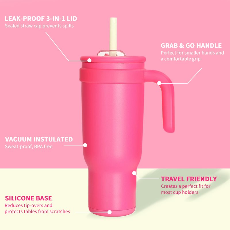• Easy Grip Handle: Ergonomic steel loop fits small hands. 40% lighter than adult tumblers. Won’t drop.